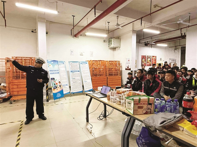 “出车前务必检查转向、刹车系统是否正常。复杂路况要注意应对。不能为了赶时间送快递而超速行驶!”交警队员现场向快递员讲解行车安全知识。律师则围绕“快递员常用法律法规政策20问”进行讲解,并现场提供政策咨询和疑问解答服务。