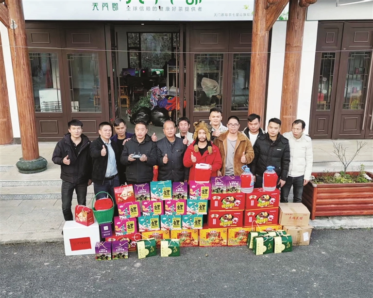 韦山和柳州亲友团在张家界七星山景区欢聚。(韦山家属供图)
