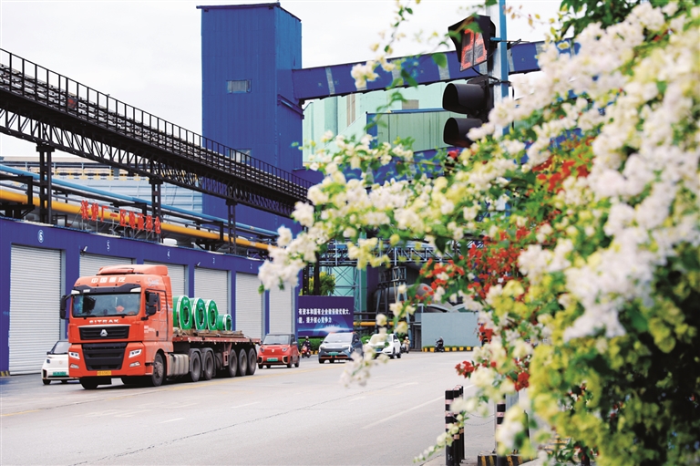 在运输结构方面,柳钢集团全面推行清洁化转型,进出厂区的重型载货车辆已全部更换为新能源汽车或国六排放标准汽车,厂内运输车辆也在持续更换,实现“用矿不见矿、运料不见料、生产不见灰”的绿色清洁运输场景。