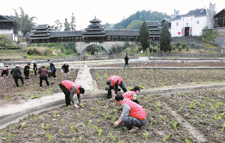 12月2日,三江侗族自治县良囗乡和里村开展冬种油菜活动。该乡党员志愿者与村民在和里三王宫周边一同种植收籽油菜,利用冬闲田打造油菜花海,营造“春赏油菜、夏观荷花”特色景观,吸引更多游客前来旅游观光,让村民在“家门口”增收致富。