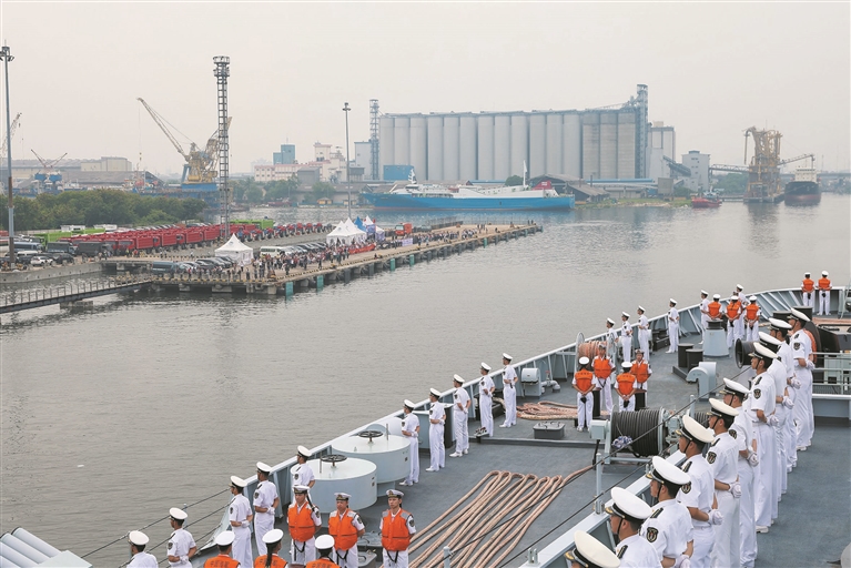 新华社雅加达12月7日电 正在执行远海综合实习任务的中国海军989编队7日抵达印度尼西亚雅加达丹戎不碌港,开始对印度尼西亚进行为期4天的友好访问。