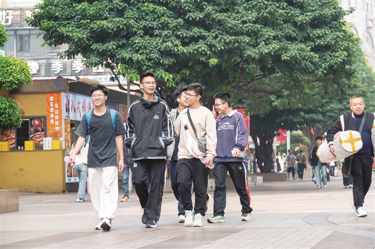 近日白天天气暖和,市民身着短袖、薄外套外出游玩。