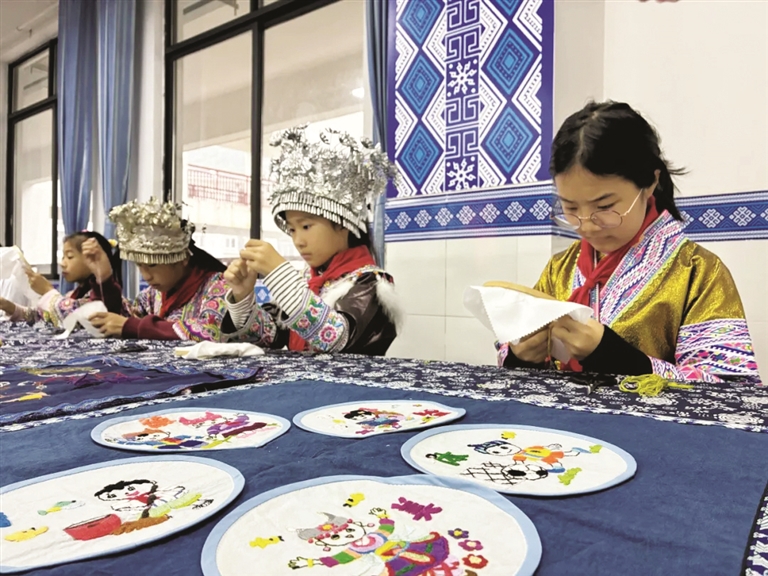作为少数民族易地扶贫搬迁安置点配套学校,苗家小镇小学将刺绣、蜡染、竹编等非遗技艺与劳动教育深度融合,走出了一条文化传承与实践育人相结合的特色之路。