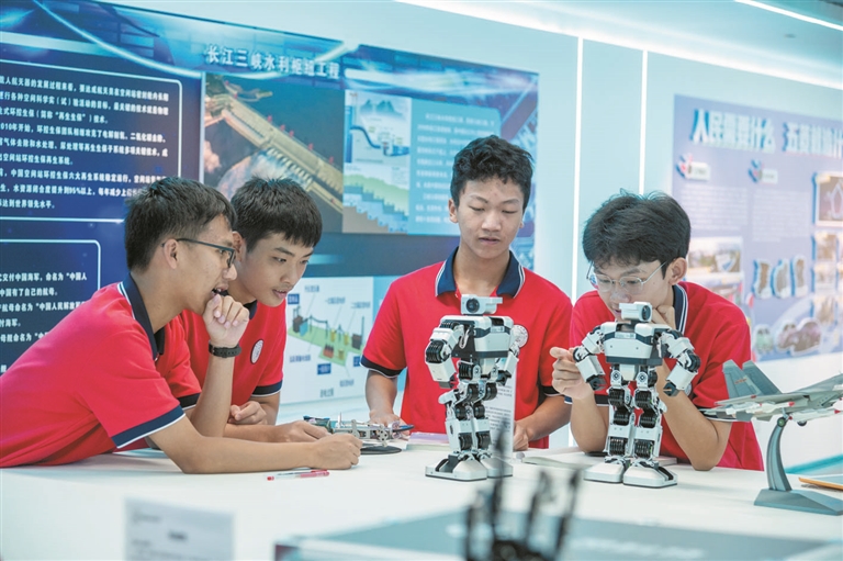 柳州高级中学学生玩转机器人。(周宁 摄)