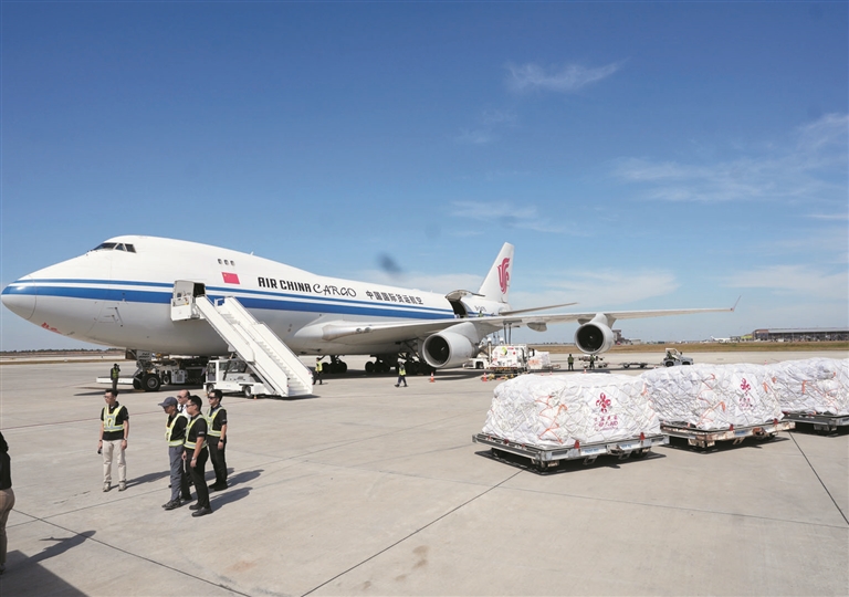 12月28日,首批中国援柬埔寨紧急人道主义物资运抵柬埔寨金边德崇国际机场。