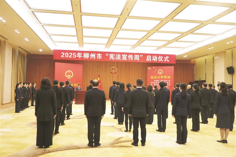 2025年柳州市“宪法宣传周”启动仪式如同一座灯塔,照亮了全市活动的航程。紧随其后,柳江区、融安县、融水苗族自治县等县(区)分别举行启动仪式,领导干部带头宣誓,在全市范围内形成了尊崇宪法、学习宪法的强大声势。