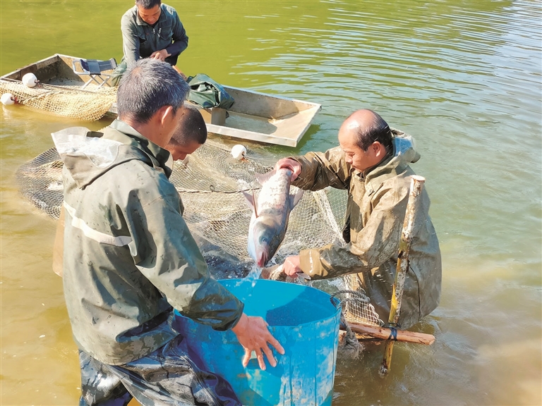近日,四排镇马龙村欧阳水库人声鼎沸、喜气洋洋。该村依托“生态渔场”项目,成功售出成鱼8000余斤,实现纯利润约4.5万元。“生态渔场”项目的落地见效,不仅让马龙村村集体经济的“荷包”更鼓,更让村民切实共享发展的红利。