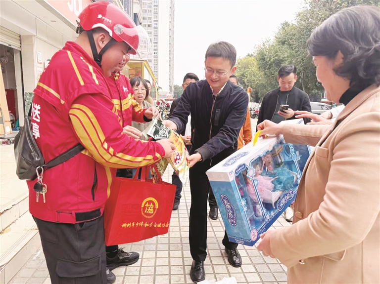“别太累,注意身体,家里有特殊情况要及时跟站长反映。配送中容易遇到哪些困难……”慰问组先后走访了覃凡萍、冯波、刘文武、黄振等骑手代表,了解他们日常配送时长、收入保障、安全防护及家庭照护等情况,叮嘱他们务必遵守交规、注意保暖,平衡好工作与休息。