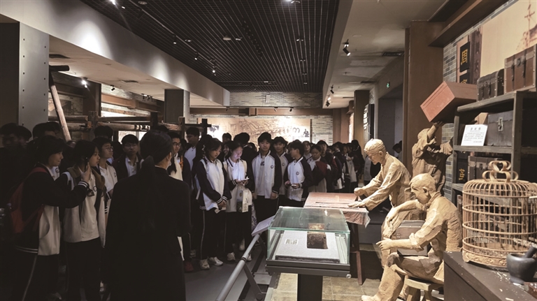 师生参观柳州工业博物馆展品。