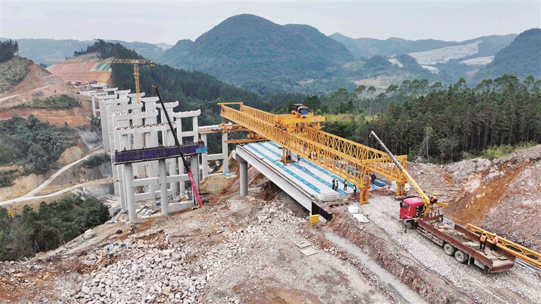 1月3日,融安县泗顶镇融福高速NO.2标段泗顶河大桥,工程建设者们在施工作业。