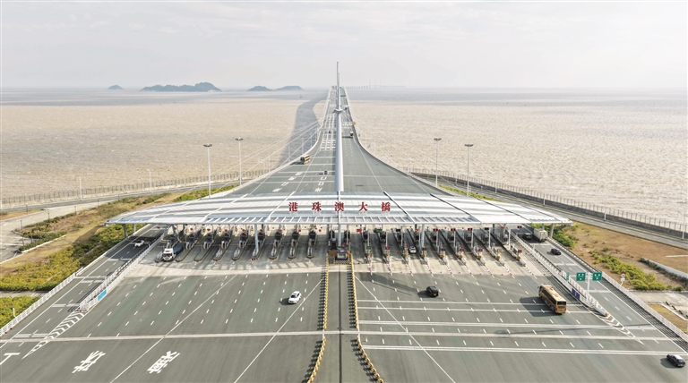 港珠澳大桥全长55公里,是世界最长的跨海大桥。2018年10月,大桥正式建成通车,香港到珠海、澳门的车程从3个小时缩短至约45分钟,大大缩短三地时空距离。随着“澳车北上”“港车北上”“粤车南下”等政策相继实施,大桥见证了粤港澳大湾区融合的加速度。