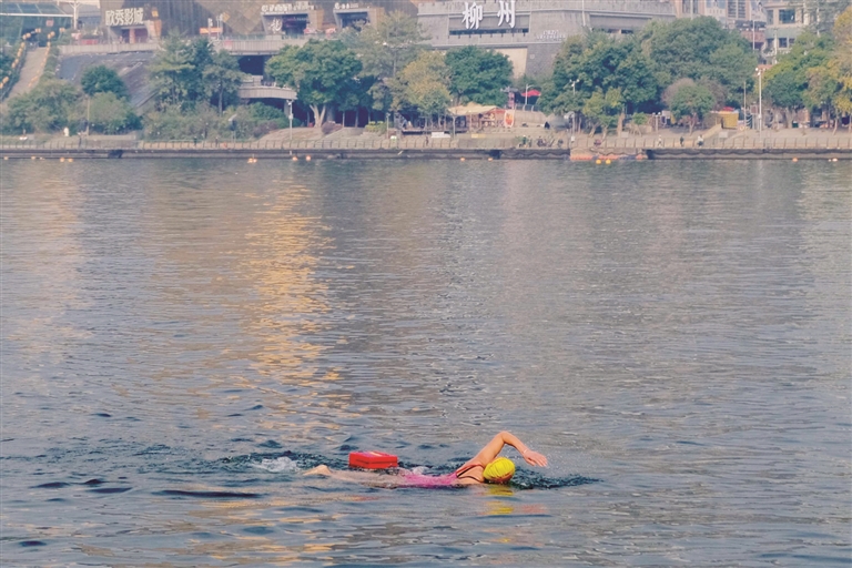 市民在柳江冬泳。