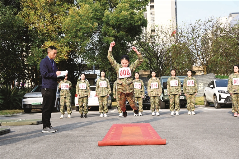 在体能测试现场,应征女青年们精神抖擞,有序进行立定跳远、肺活量、平衡能力、跳绳等项目的测试。每名应征女青年都尽全力展示自己,大方接受祖国挑选。