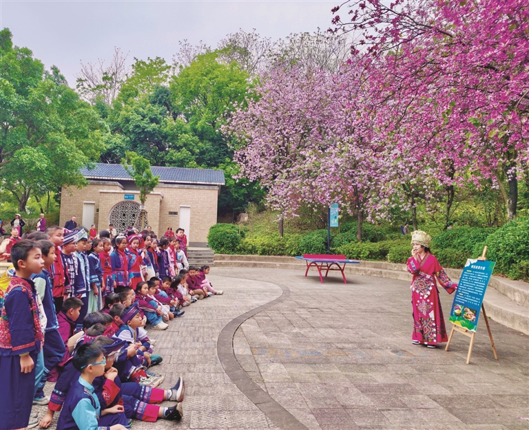 近日,市城市绿化维护管理处携手鹅山路小学,在洋紫荆盛开之际,到鹅山公园开展“健循在时节,五彩乐民俗”“广西三月三”健康主题实践活动,让学生在沉浸式体验中感受自然与民族文化之美。