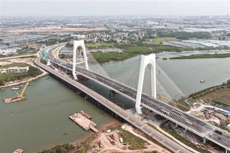 3月31日,地处钦江入海口的平陆运河沙井钦江大桥建成通车。至此,平陆运河规划的27座跨线桥梁中,已有25座桥梁建成通车,全线桥梁工程即将收官。