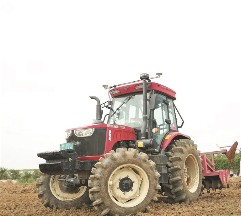 搭载北斗导航系统的大型耕田机开展深松整地作业。