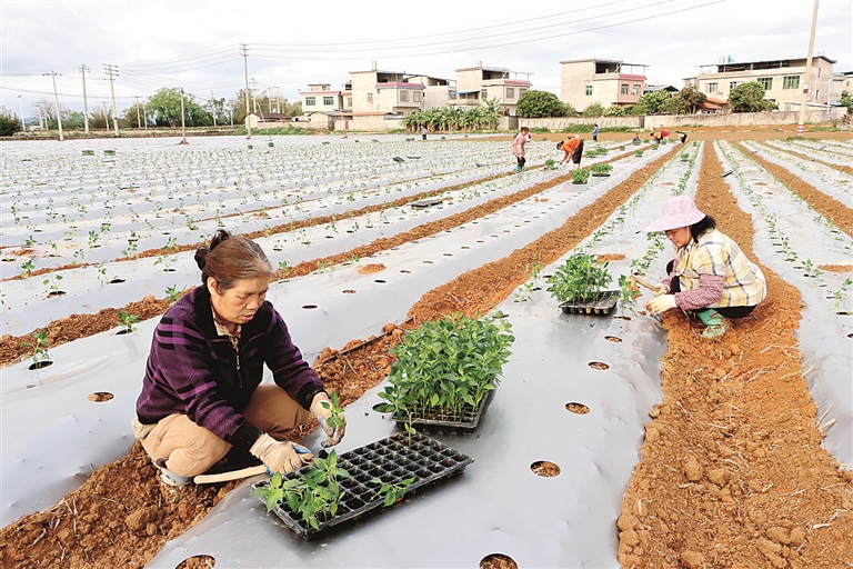 “选择在俄洲村建设种植基地,是看中了这里地块连片平坦、气候温润适宜、水源充足便捷的得天独厚条件。”基地管理人员刘炳炎说,为充分盘活土地资源,该基地已规划好轮作方案,待辣椒采收结束后,将连片种植糯玉米,实现土地效益叠加,力争让田地四季“生金”。