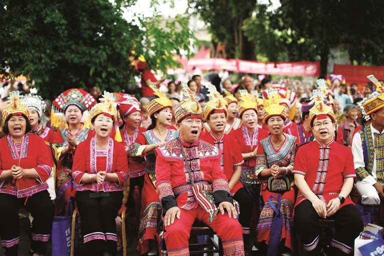 “山歌王”齐声高唱山歌宣传法律知识。