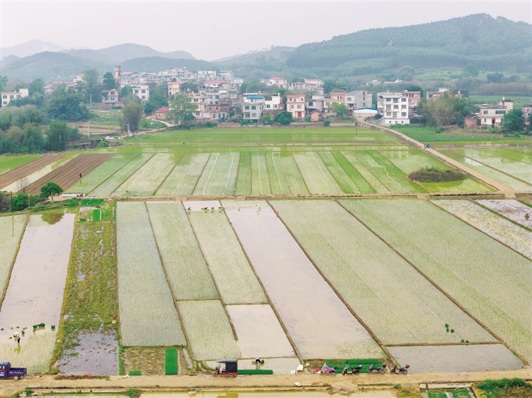 眼下正值早稻移栽关键期。4月20日正值谷雨节气,在柳北区石碑坪镇古木村,村民抢抓农时开展水稻插秧作业。水田里,农户弯腰栽插,田块渐次泛绿。连片稻田与村落民居相互映衬,呈现出春耕生产的田园景象。谷雨前后农时紧、节奏快,目前我市各地正有序推进早稻移栽,为全年粮食生产开好头、起好步。