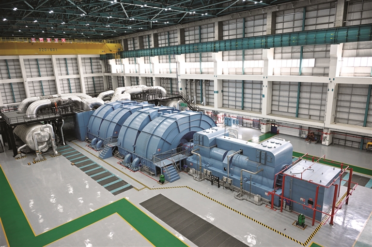 4月20日拍摄的中广核广东太平岭核电项目1号机组汽轮发电机。