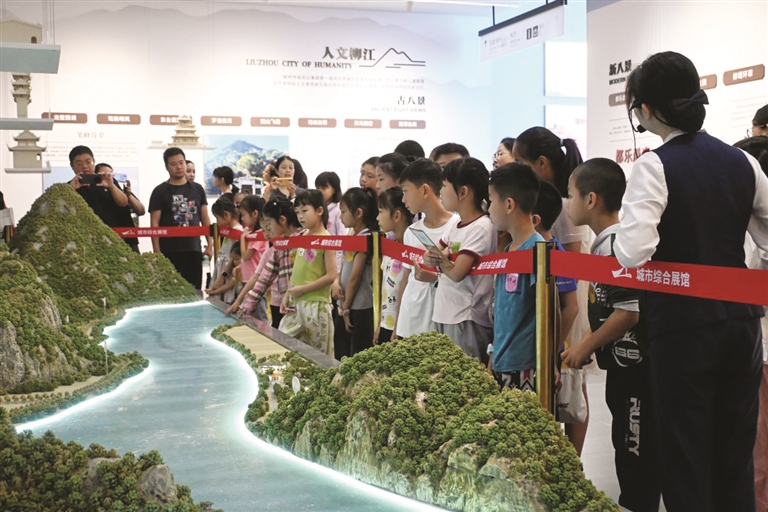 本次活动围绕“珍爱自然资源 守护美丽中国”主题开展,孩子们在讲解员的带领下了解柳州城市定位、资源禀赋、桥梁历史、人文底蕴,通过观看城市发展影片、观摩城市巨型沙盘模型,直观感受柳州“山环水抱”的生态格局与发展变迁。