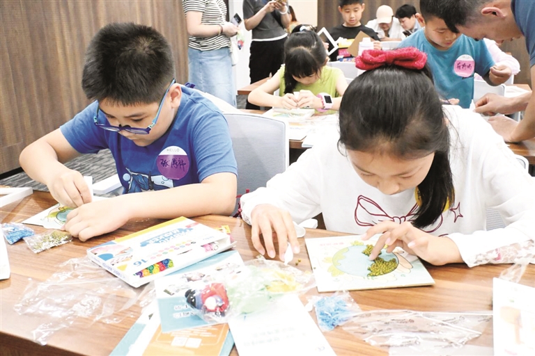 活动结合本地喀斯特地貌特点,开设了“地灾科普小讲堂”,通过通俗易懂的语言和趣味问答,向孩子们普及地质灾害防治与自救互救知识。现场还设置了自然资源科普展区,展示柳州在耕地保护、生态修复以及地灾治理等方面的工作成效。创意手作环节,孩子们以素色帆布袋为画布进行手绘,用红豆、绿豆和小米等谷物拼贴出地球图案。