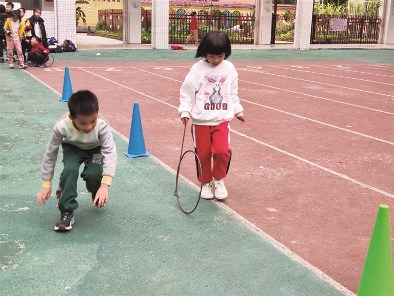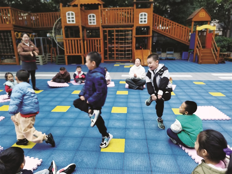 市公园路幼儿园(本部)政教主任李思慧也说,园所一直注重传统民间游戏的传承与创新,在班级区域活动中投放布料、绳子、沙包等低结构材料,支持孩子们自主探索传统游戏的多样玩法,“孩子们在互动中不仅提升了肢体协调性与团队合作意识,更在潜移默化中感受传统文化,让文化浸润成长之路。”
