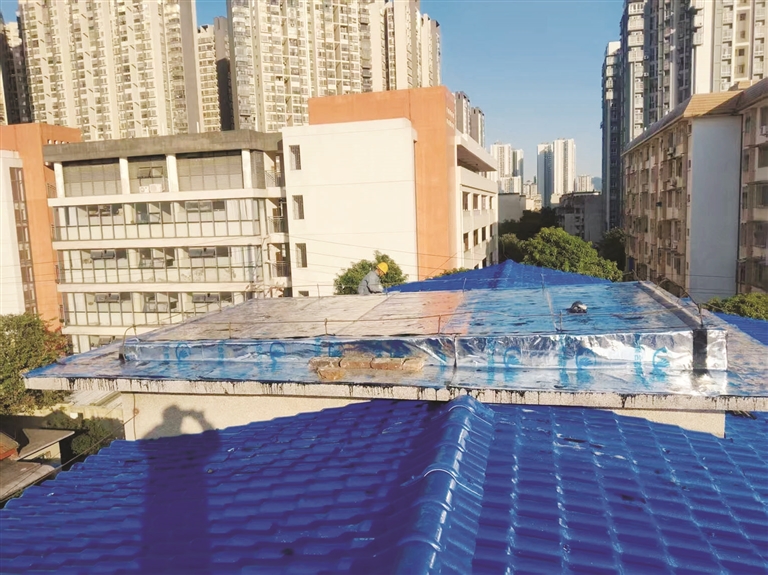 此前,军休干部普遍反映楼顶存在漏水情况。今年9月,市胜利军休所在广泛听取军休干部意见的基础上,积极协调柳州市住房维修改造基金,及时启动防水改造项目。目前,由市胜利军休所、施工方及军休干部代表共同组成的验收组,正严格依据施工标准与合同约定,对工程质量展开细致核查,验收重点包括防水层与树脂瓦铺设工艺、防漏与隔热实效等,并认真听取顶层住户的现场反馈。