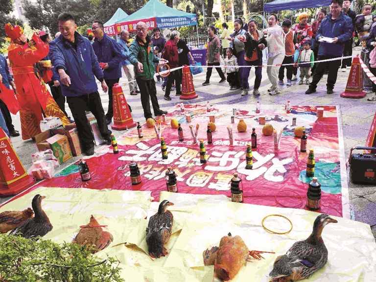 活动现场热闹非凡,趣味互动区排起长队。居民沈记荣抽中了心心念念的电磁炉,笑容满面地说:“我正想买个新的电磁炉,物业太懂我们的需求了!”林女士在套圈游戏中一掷即中,稳稳套中一只土鸡,引来全场欢呼。她兴奋地说:“这可是原生态土鸡,明天就给家人炖一锅鲜鸡汤!”