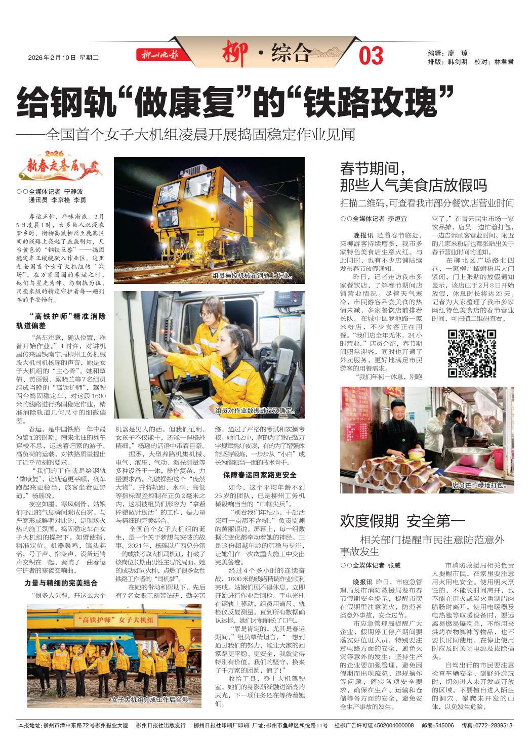 昨日,记者走访我市多家餐饮店,了解春节期间店铺营业情况。尽管天气寒冷,市民游客品尝美食的热情未减,多家餐饮店前排着长队。在城中区罗池路一家米粉店,不少食客正在用餐。“我们店全年无休,24小时营业。”店员介绍,春节期间照常迎客,同时也开通了外卖服务,更好地满足市民游客的用餐需求。