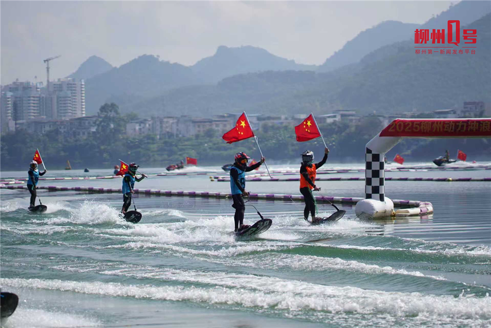 10月1日上午,举国欢庆佳节,2025柳州动力冲浪板公开赛暨全民邀请赛在柳州静兰水上运动中心盛大开幕。本届赛事吸引了来自全国各地的120名选手齐聚柳州,在碧波荡漾的柳江展开速度与激情的精彩较量。