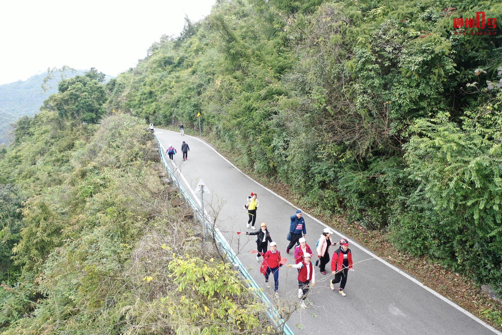 活动中,运动爱好者沿着约6.1公里的山路徒步至山顶,一路运动健身,一路欣赏美景。不少爱好者在登高远眺的同时,也为新的一年许下美好的心愿。